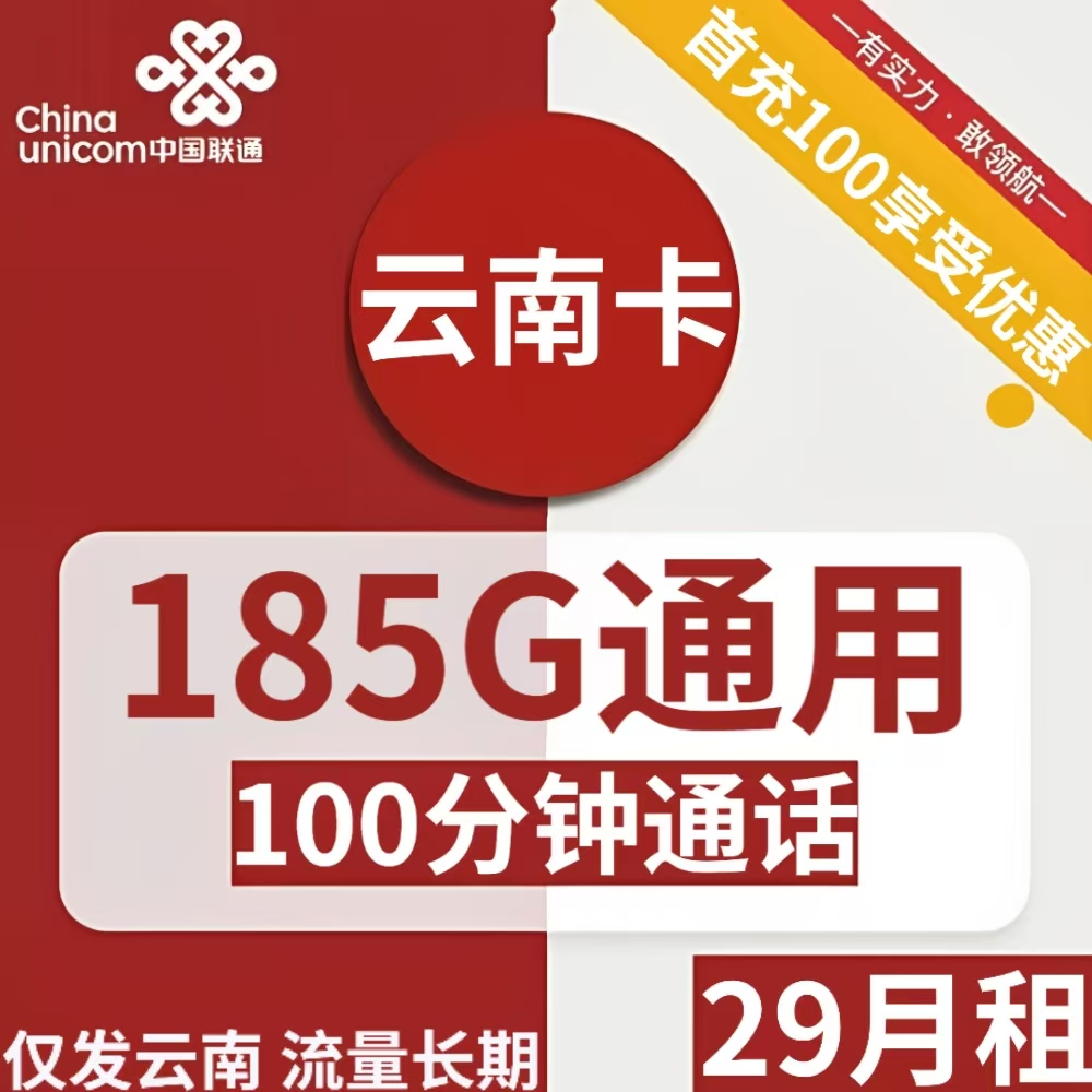29元包185G通用+100分钟(只发云南)