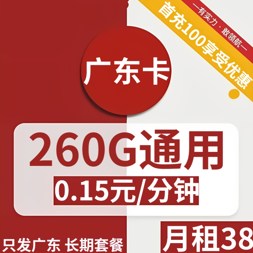 38元260G+0.15元/分钟(只发广东,长期套餐)