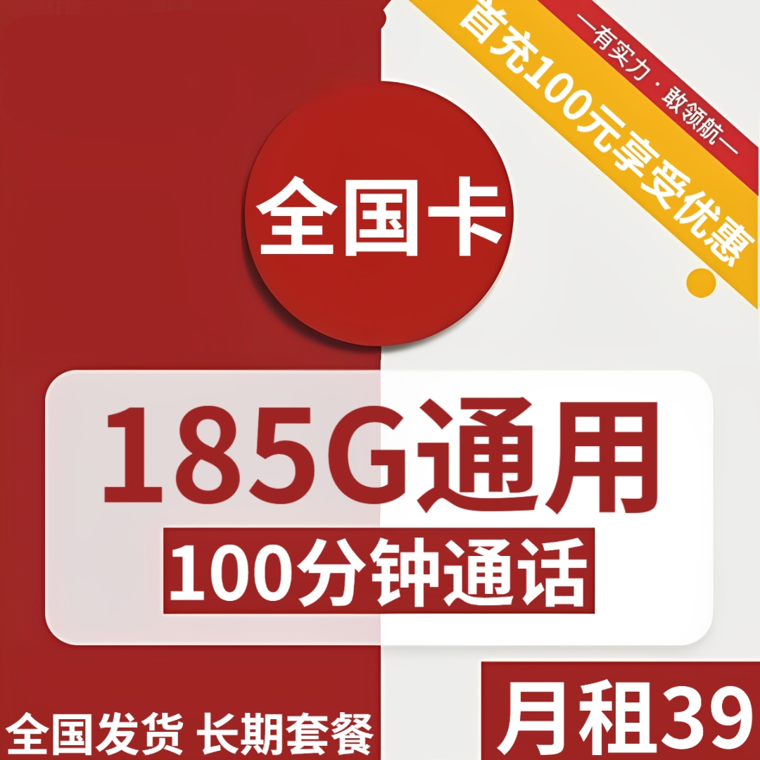 39元185G通用流量+100分钟全国发货,激活首充后发货